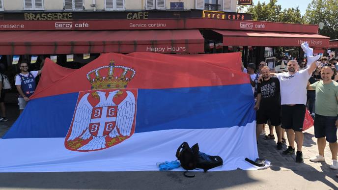 Veliki broj srpskih navijača se skupio ispred hale Bersi, raširene su zastave, a pesma ne prestaje!
