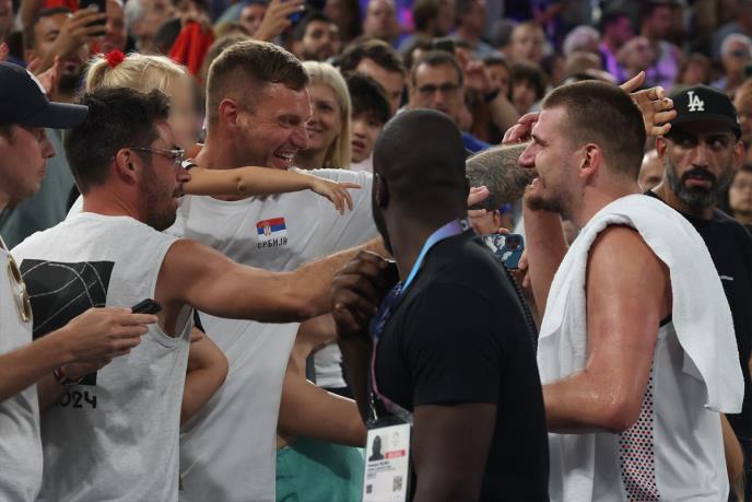 Kao i uvek, posle velike pobede Jokić je prvo otrčao u zagrljaj svoje porodice - brata Nemanje, supruge Natalije i ćerke Ognjene.