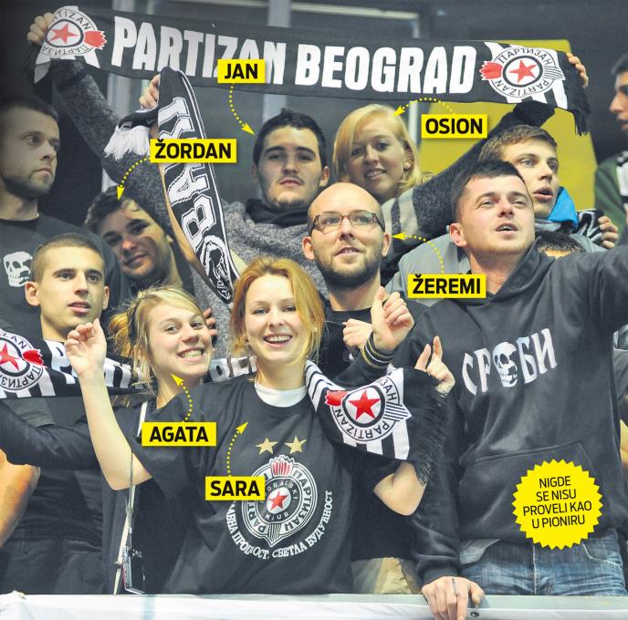 Ima jedan tim, ceo sam život s njim! - pevala su uglas trojica Francuza u Pioniru, na meču Partizana MTS. Možda nisu ceo život, ali poslednjih nekoliko godina žestoko navijaju za beogradske crno-bele. Žeremi (28), Žordan (24) i Jan (23) ovoga puta poveli su i svoje lepše polovine.