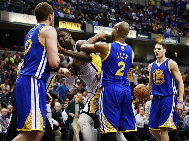 INDIJANAPOLIS - Košarkaši Indijane pobedili su na svom terenu Golden Stejt (108-97), međutim, meč je obeležila velika tuča igrača sredinom poslednje deonice.
