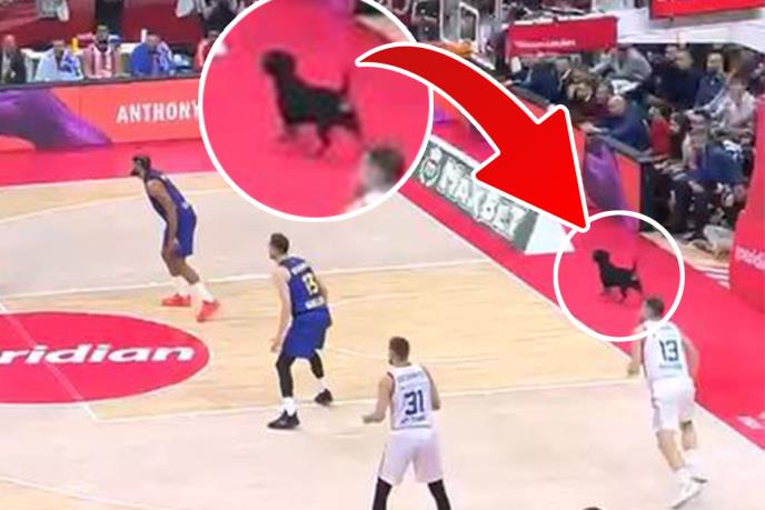 U trenutku kada je Zvezda bila u naletu ispod koša koji su branili košarkaši Barselone našao se pas.
