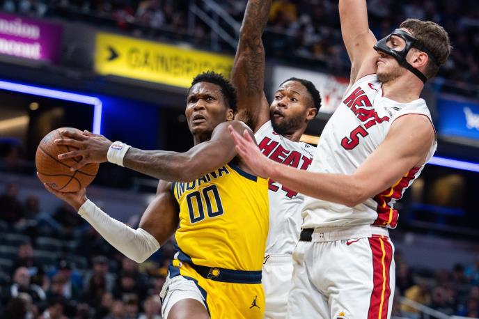 Košarkaši Majamija pobedili su kao gosti Indijanu rezultatom 124:111 u meču NBA lige uz odličnu partiju Nikole Jovića koji je meč odigrao sa maskom na licu zbog preloma nosa. Najefikasniji u ekipi Majamija bio je Bem Adebajo sa 30 poena, dok Tajler Hiro je dodao 20.