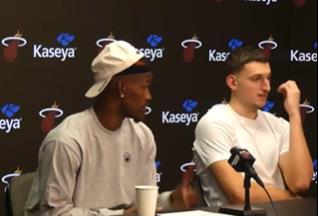 Nikola Jović je ubacio 14 poena i igrao je praktično bez greške, a potom se pred medijima neočekivano pojavio zajedno sa Džimijem Batlerom - najboljim igračem Majamija koji ga je "uzeo pod svoje" od kada je stigao na Floridu. Sve se više priča o tome da više neće igrati zajedno jer će Batler možda biti trejdovan, ali osmeh na njihovim licima govori da se to možda i neće desiti. Za sada se fantastično zabavljaju...
