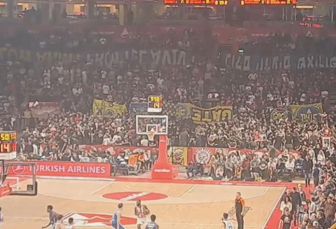 Navijači Crvene zvezde podigli su tokom meča u beogradskoj Areni zaplenjene zastave navijača Makabija.