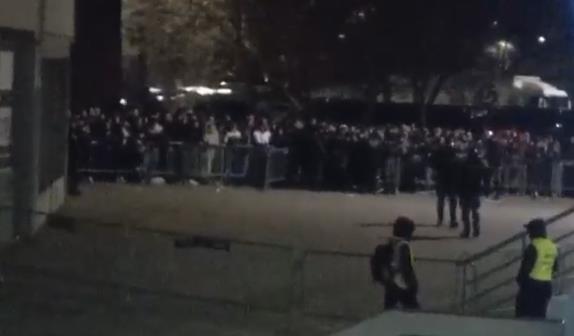 Za sada nije poznato zašto je grupa od nekoliko desetina navijača ostala uskraćena za ulazak u halu, a za to vreme oni iz sveg glasa pevaju navijačke pesme i od spolja bodre omiljeni tim.