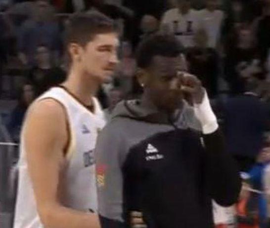 Reprezentativac Nemačke je fauliran prilikom pokušaja da zakuca, a potom je nezgodno pao na leđa. U prvi mah se činilo da je pad ozbiljniji, ali je Bonga ustao i izveo slobodna bacanja.