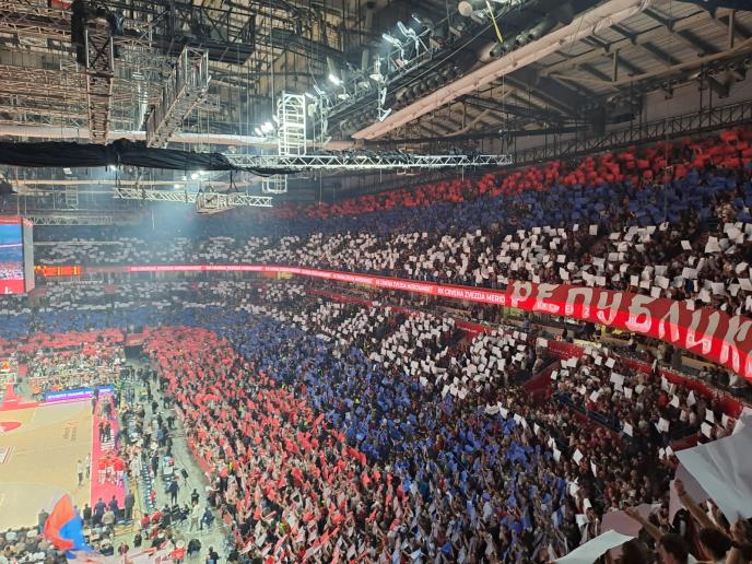 ARENA U BOJAMA ZASTAVA RUSIJE I SRBIJE: Pogledajte koreografiju Delija i koja se čuvena pesma orila dvoranom!