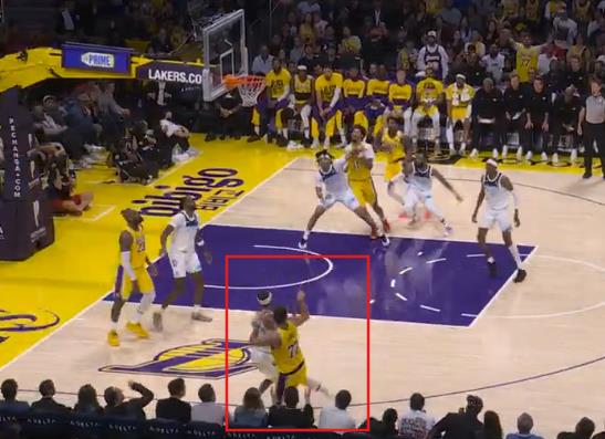 Loše je izgledao napad Lejkersa, Lebron je krenuo na prodor, ali je odbrana sjajno odradila posao. Nije imao kud Džejms, pa je u očaju bacio loptu ka Dončiću. Iako je pas bio izuzetno loš, Luka je uspeo da uhvati loptu i u padu pogodi trojku iz nemoguće pozicije.