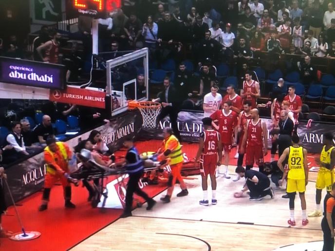 Naime, tešku povredu doživeo je bivši košarkaš Crvene zvezde Fredi Gilespi, koji je na nosilima iznet sa terena. Gilespi je glavom udario u rame Devona Hola, a potom je pri padu glavom udario u parket.