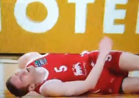 Francuz je odmah po prijemu lopte povukao napad, ali se naprasno zaustavio i pao na parket posle čega je izašao sa terena.