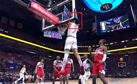Nabacio mu je Mičel loptu za alej-up, Ver je to sjajno ispratio, zakucao je loptu u koš, ali je tom prilikom udario glavom u ivicu table.