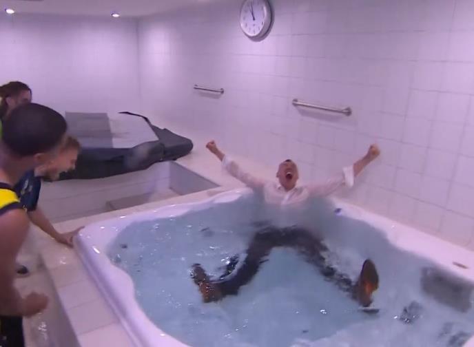 Po završetku meča, Marko Gudurić je počeo da poliva vodom trenera Šarunasa Jasikevičijusa, a onda su ga ostali igrači bukvalno odneli i bacili u đakuzi.