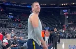 Dok je Somborac šutirao trojke, fan domaćeg tima mu je konstantno nešto dobacivao, ali Jokić se nije preterano obazirao na to. U jednom momentu se okrenuo ka mestu sa kog su se čule prozivke i nasmejao se, a onda je mirno nastavio da šutira.