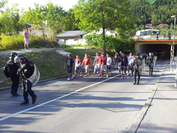 Veće sukobe sprečio je veliki broj policajaca, koji obezbeđuju prostor oko dvorane u Jesenicama. Pred samu utakmicu pojavla se grupa od 30 navijača Srbije sa obeležjima Crvene zvezde koja je palila baklje u tunelu a sprovedeni su do hale u pratnji policije.