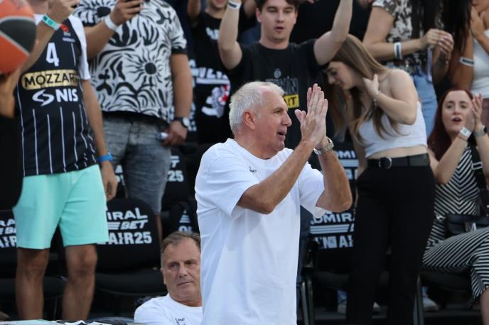 Po izlasku na teren, navijači su ovacijama pozdravili trenera crno-belih Željka Obradovića.