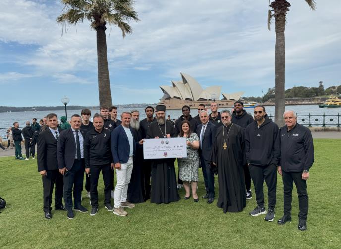 Predsednik KK Partizan i potpredsednik Fondacije "Dobro pamtim sve", Ostoja Mijailović iskoristio je danas priliku za posetu Koledžu "Sveti Sava" u Sidneju.