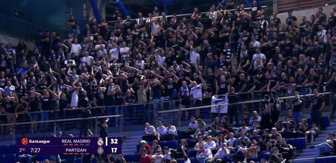 Partizan ne igra baš najbolje, Real na poluvremenu ubedljivo vodi, ali zato crno-beli imaju sjajnu podršku u dvorani.