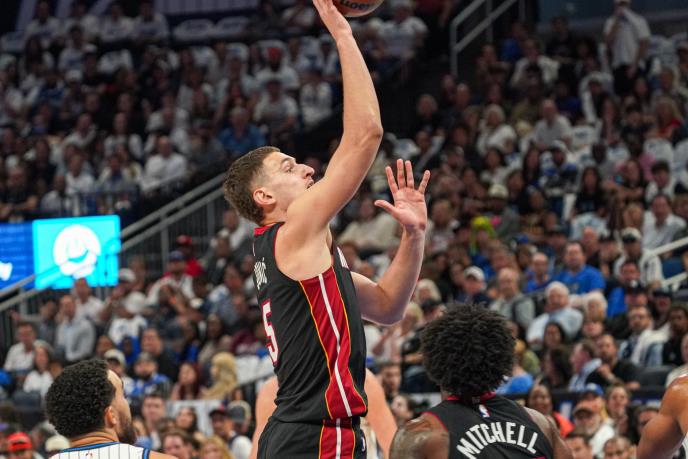 Nikola Jović na utakmici protiv Orlanda. Foto: Imagn Images / ddp USA / Profimedia, Stephen M. Dowell / Newscom / Profimedia, Julio Aguilar / Getty images / Profimedia