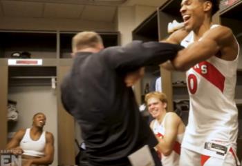 Po ulasku u svlačionicu, srpski trener je najpre zadržao smiren izraz lica, a zatim uz uzvik "Idemo, je*eno!" energično čestitao svojim igračima na sjajnoj partiji protiv Atlante.
