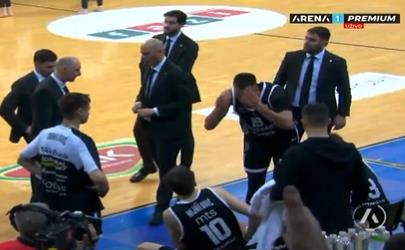 U finišu meča kamera je zabeležila jedan emotivan ispad borbenog Arijana Lakića na klupi crno-belih.