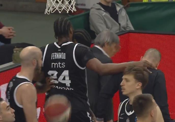 Centar Partizana je nezgodno doskočio u situaciji kada je pokušao da blokira šut protivničkog igrača. Potom je šepajući, uz pomoć drugih, otišao do klupe.