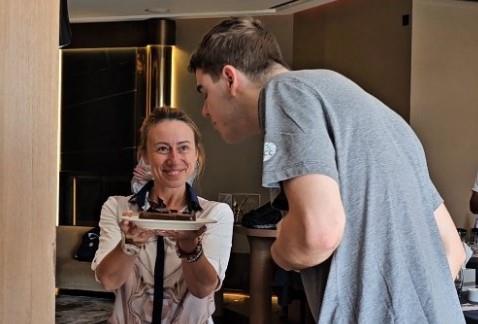 Topić je započeo dan uz osmeh na licu, pošto su ga saigrači i stručni štab dočekali tortom i pesmom.