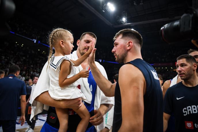 Po završetku utakmice u kojoj su poseban pečat dala dva, možda trenutno i najbolja košarkaša na svetu, Nikola Jokić i Luka Dončić, viđena je simpatična scena. Jokić je odmah uzeo ćerku Ognjenu u naručje, a kada je stigao do Dončića desio se, narodski rečeno "baci pet" pozdrav između Ognjene i Luke.