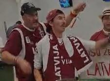 Letonski navijač je skinuo patiku i počeo da udara u bubanj.