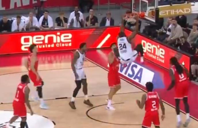 Bruno Fernando, novi centar Partizana, debitovao je na ovoj utakmici i odmah je imao sjajnu zakucacanje!