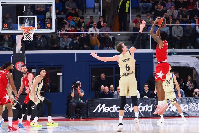 Košarkaši Milana pobedili su večeras na svom terenu Barselonu 87:84 (24:17, 22:17, 32:17, 9:33), u 30. kolu Evrolige. Milano su predvodili Zek Ledej sa 16, Leandro Bolmaro sa 13, Ševon Šilds i Džoš Nibo sa po 12, Armoni Bruks sa 11 i Devin Buker sa 10 poena.