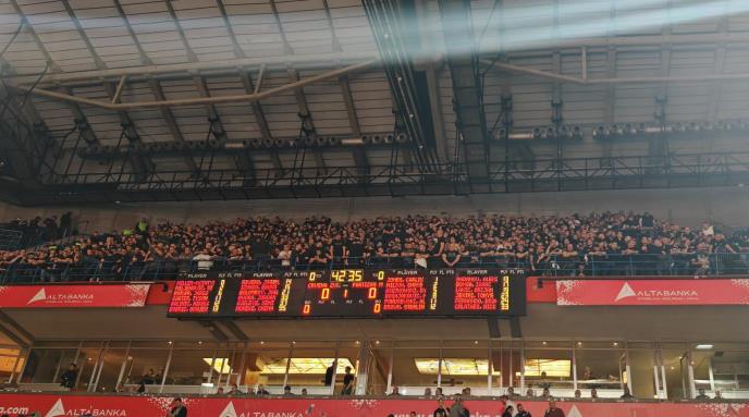 Košarkaši Crvene zvezde i Partizana igraju meč 35. kola Evrolige, a sat vremena pred ovaj meč navijači crno-belog tima zauzeli su svoje pozicije na južnoj tribini.