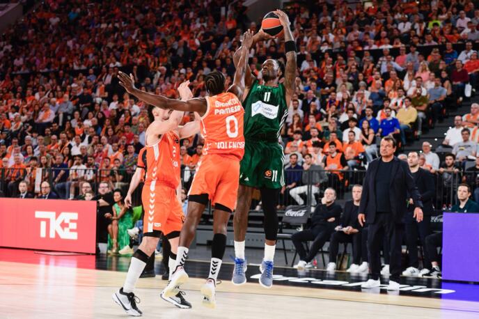 Košarkaši Panatinaikosa poveli su 2:0 protiv Valensije u četvrtfinalnoj seriji plej-ofa Evrolige, pošto su večeras, na gostujućem terenu, posle produžetka pobedili 107:105 (24:23, 25:25, 25:23, 21:24, 12:10).