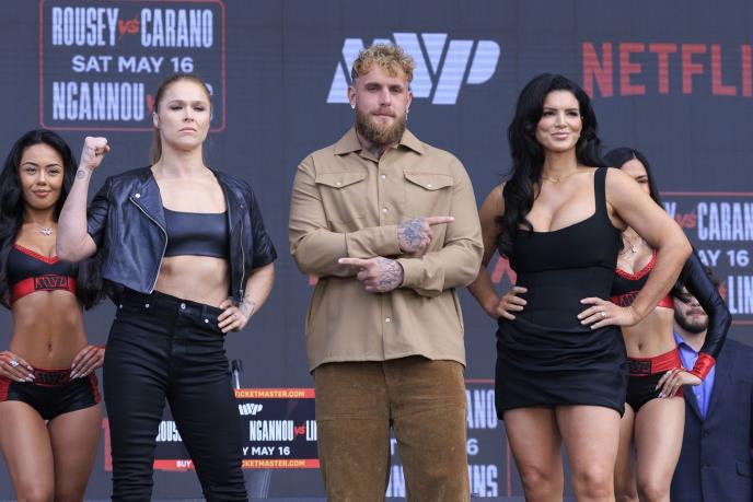 I Ronda i Đina šarmom i lepotom plene pred borbu, a tako je bilo i na prvom suočavanju i konferenciji, gde je Karano posebno dominirala u ženstvenoj haljini sa dubokim dekolteom.