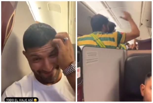Aguero je podelio delić atmosfere iz aviona i po njegovom izrazu lica videlo se da mu nije nimalo prijatno.