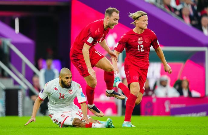 32. minut - Centrirao je Eriksen dva puta, iz kornera pa iz igre, ali raščišćavaju Tunižani. Biće novi korner za Dansku, prethodno je sjajno reagovao Hejbjerg i sprečio veliki šansu za Tunis.