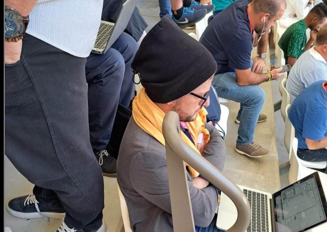Zvuči neverovatno, ali novinari i publika se smrzavaju na stadionu zbog jake klime. Tako je jedan kolega iz Italije pribegao očuvanju zdravlja, tako što je na glavu stavio zimsku kapu.