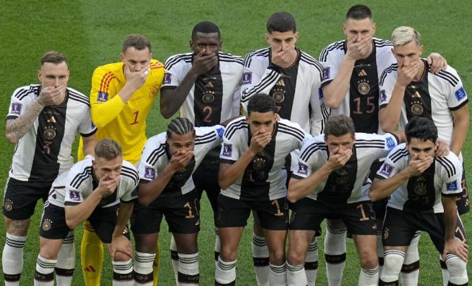 Fudbaleri reprezentacije Nemačke uoči utakmice prvog kola grupne faze Svetskog prvenstva protiv Japana stavili su ruke preko usta tokom timskog fotografisanja.