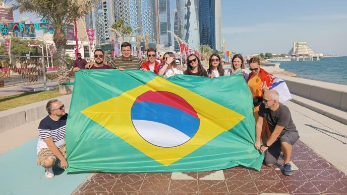 Dizajnirali su unikatnu zastavu zeleni žute boje, sa srpskom trobojkom u sredini, koja simbolizuje večerašnju utakmicu na Mundijalu između Srbije i Brazila.