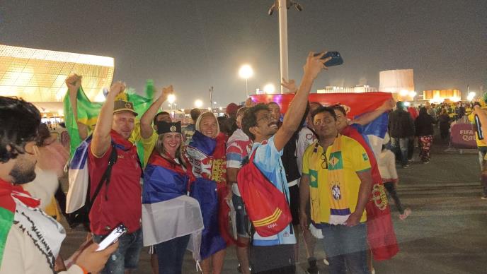 U korteu koji ide do stadiona Lusail gde će večeras snage ukrstiti Srbija i Brazil, srećemo poznata lica - najbolje svetske basketaše. Dejan Majstorović, Uros Branković i Strahinja Stojačić sa zadovoljstvom pričaju za Kurir.