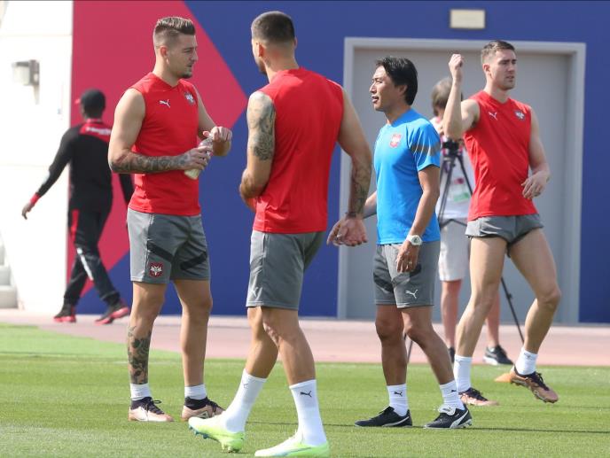Selektor Dragan Stojković Piksi delovao je mirno. Tako je i posmatrao uvodni deo treninga koji je realizovao njegov pomoćnik Kacuhito Kinoši, tražeći od srpskih fudbalera maksimalno zalaganje i agilnost, bez obzira na tropske uslove od 32 stepena.