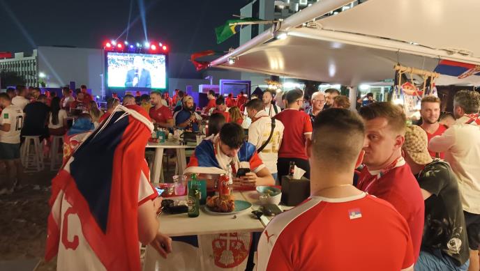 Atmosfera među srpskim navijačima je stigla do tačke usijanja, a veliki broj Srba koji su stigli u Dohu da podrže nacionalni tim okupio se u blizini hotela u kojem boravi reprezentacija Srbije.