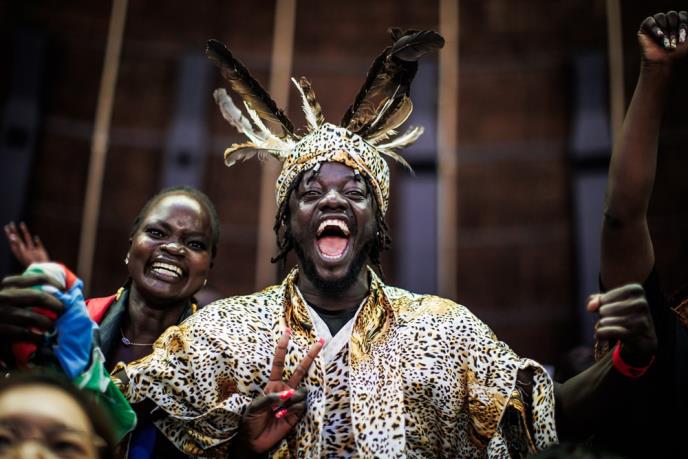 Ispred Araneta Koloseuma sreli smo grupu navijača Južnog Sudana, a među njima se izdvaja simpatični momak u tradicionalnoj odeći svog naroda. Prilikom direktnog uključenja na TV Kurir rekao je da će Srbija proći poput Kine, odnosno, da će njegova reprezentacija slaviti.