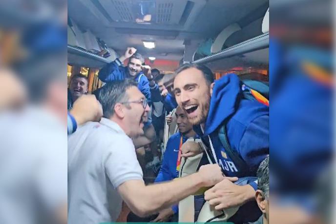 Nakon meča videlo se koliko je našim igračima značila ova pobeda, a istu su umeli i da proslave sa navijačima koji su ispunili halu. Odlična atmosfera sa parketa prenela se i na autobus kojim su se naši reprezentativci vraćali do hotela posle naporne utakmice.