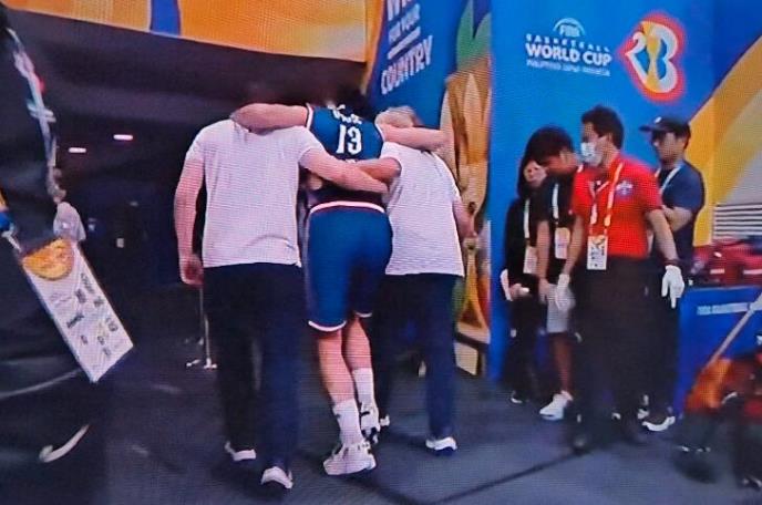 Nažalost, nije mogao da nastavi meč, pa je uz pomoć fizioterapeuta naše reprezentacije otišao u svlačionicu.