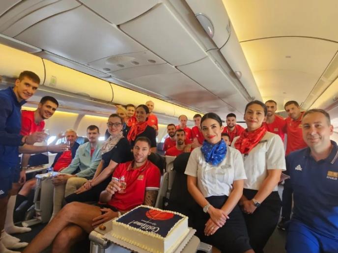 Na 12-časovnom letu bio je i Boriša Simanić, za kog je obezbeđen specijalni deo u avionu, ali se on u jednom momentu na kratko pridružio svojim saigračima.