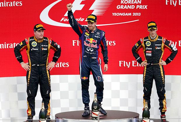 Vozač Red bula stigao je do osme pobede u sezoni, a četvrte uzastopne. On je u Koreji ostvario 34. pobedu u karijeri. Trostruki uzastopni svetski šampion je do pobede došao za sat, 43 minuta, 13 sekundi i 701 stotinku. Fetel je trijumfovao ispred vozača Lotusa Finca Kimija Raikonena i Francuza Romana Grožana.