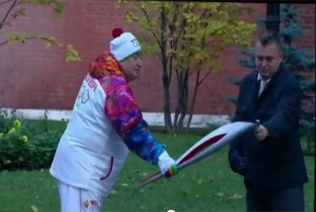Na putu ka Kremlju jednom od sportista koji je nosio baklju vatra se ugasila pa je morao da interveniše pripadnik obezbeđenja