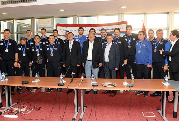 Vicešampione sveta na aerodromu dočekali su čelnici Odbojkaškog saveza Srbije (OSS) na čelu sa predsednikom Aleksandrom Boričićem.