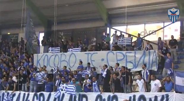 Navijači Anortozisa iz Famaguste, grada koji je bila centar turske invazije 1974. godine i podele Kipra, na tribini su okačili poruke "Sloboda za Famagustu", "Grčka - Srbija - pravoslavlje" i "Kosovo je Srbija".