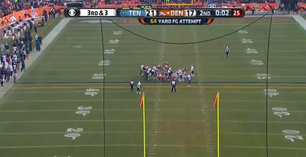 Prater je krajem prvog poluvremena pogodio sa neverovatne udaljenosti od 64 jarda (60 metara) i tako postavio rekord u američkom fudbalu.
